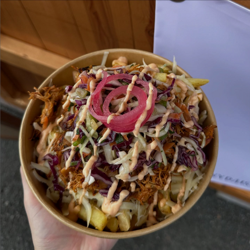 With fresh slaw, pink onions, and a tasty range of dips, every dish is made to order and full of colour. Perfect for lunch, a snack, or a cheeky food stop between stalls.